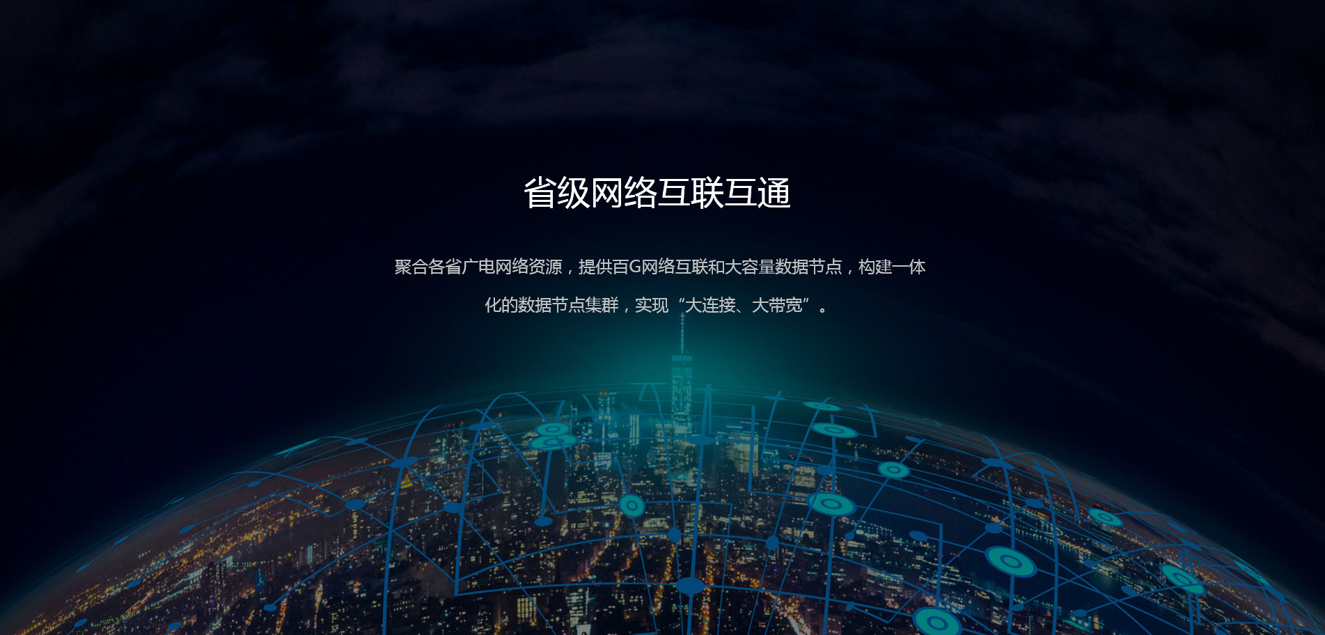 聚合各省廣電網絡資源,提供百G網絡互聯,構建全國性省際網絡互聯互通與數據節點等基礎服務;基于大連接與大數據融合的業務模式,提供廣電特色的數據技術服務。